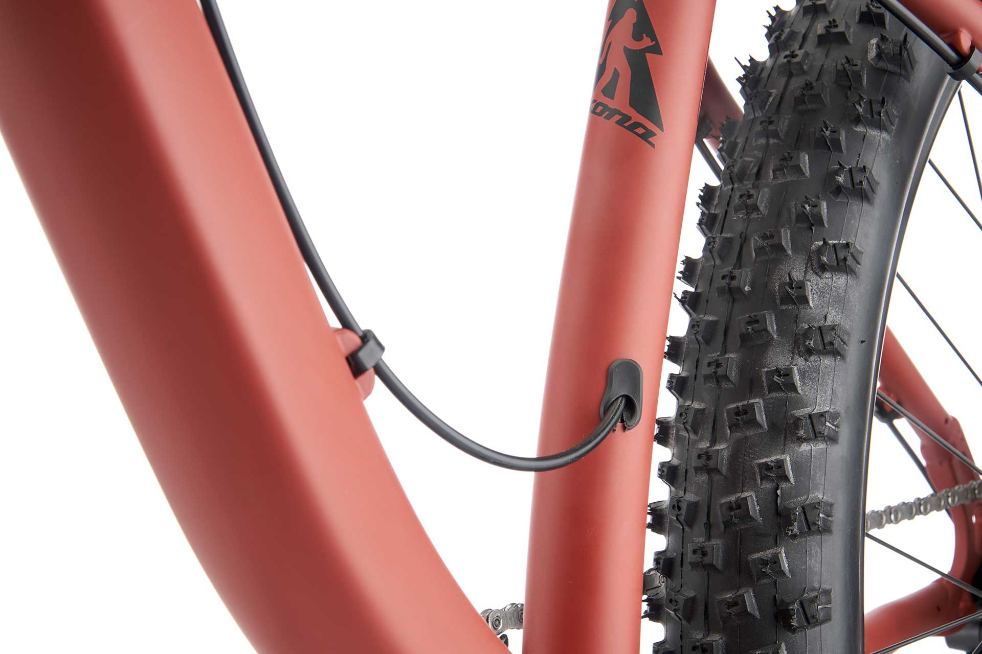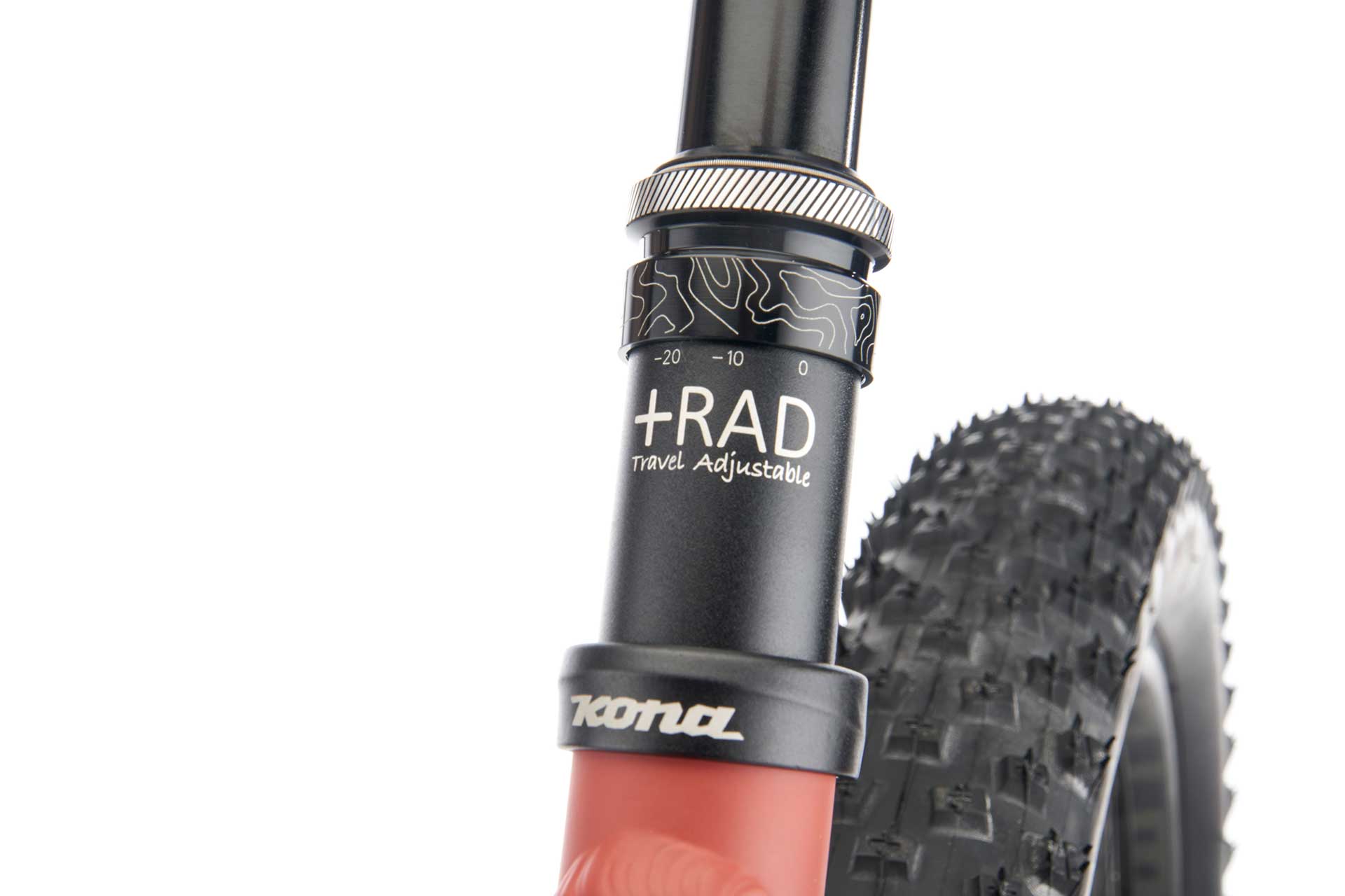MTBライドをさらに楽しくするパーツとして近年重要視されているのが、サドルの高さがスイッチひとつで変更できるドロッパーシートポストです。下りでは低く、登りでは高くと、サドルの高さを一瞬で変更することで、走りをより効率的にします。KONAではエンデューロモデル、MTBトレイルモデルの多くので標準装備。装備されていない場合も、ケーブルを内蔵する穴やケーブルのマウントなどが、 後なるアップグレードのために備られています。