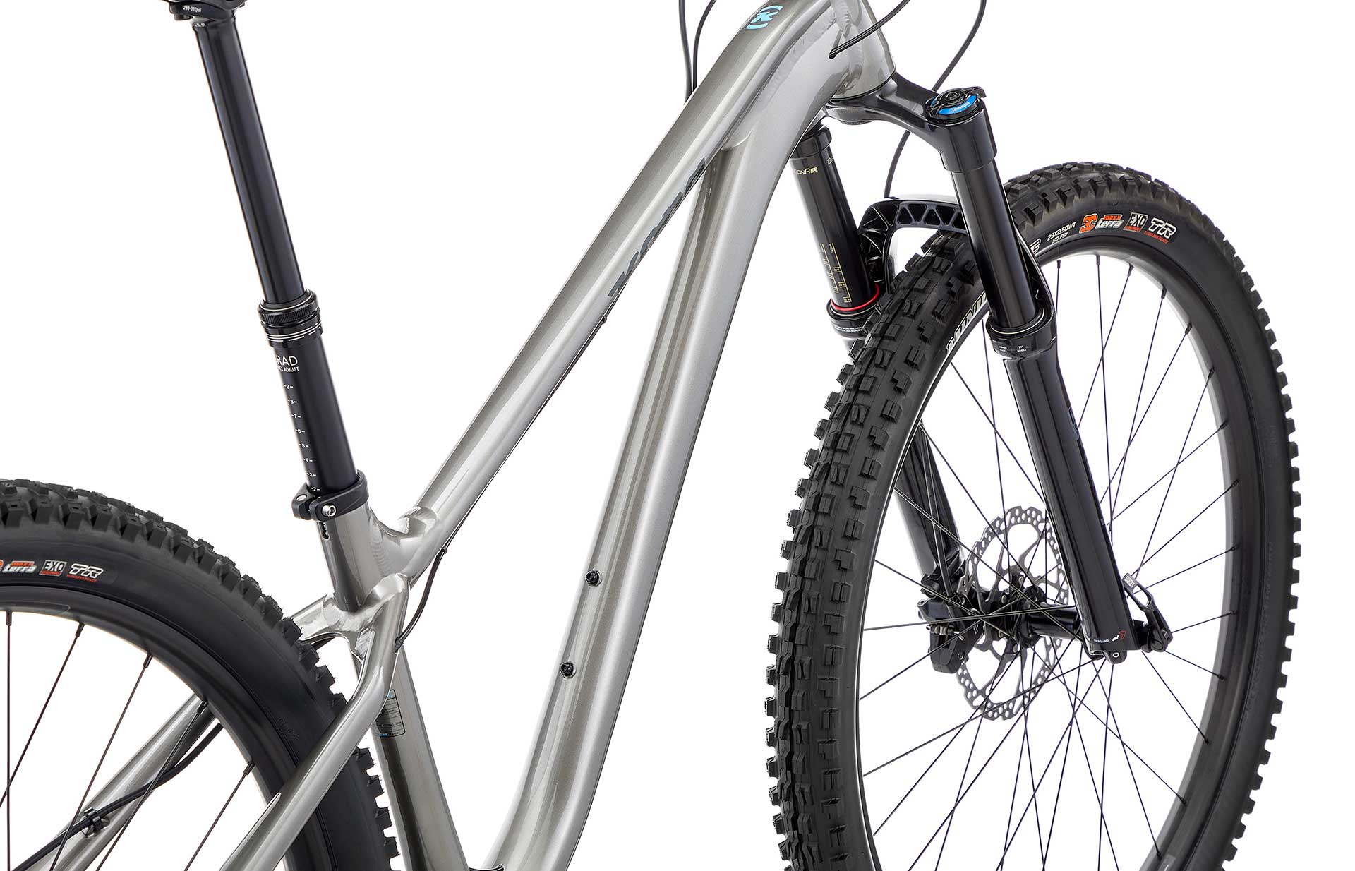 後輪のアクスルに、12x148mm アクスルを使います。このスルーアクスルは、大きな利点を2つ提供します。1つ目は、リアアクスルの12mmという直径がリアハブとフレームとを噛みあわせ剛性を上げること。2つ目はホイールをフレームと、アクスルを挿入する前から正確な位置に合わせられること。また、チェーンステーとタイヤとのクリアランス(空間)を広げて太いタイヤ(プラス規格)の装着を可能とし、高剛性で反応性の高いホイールを造ります。