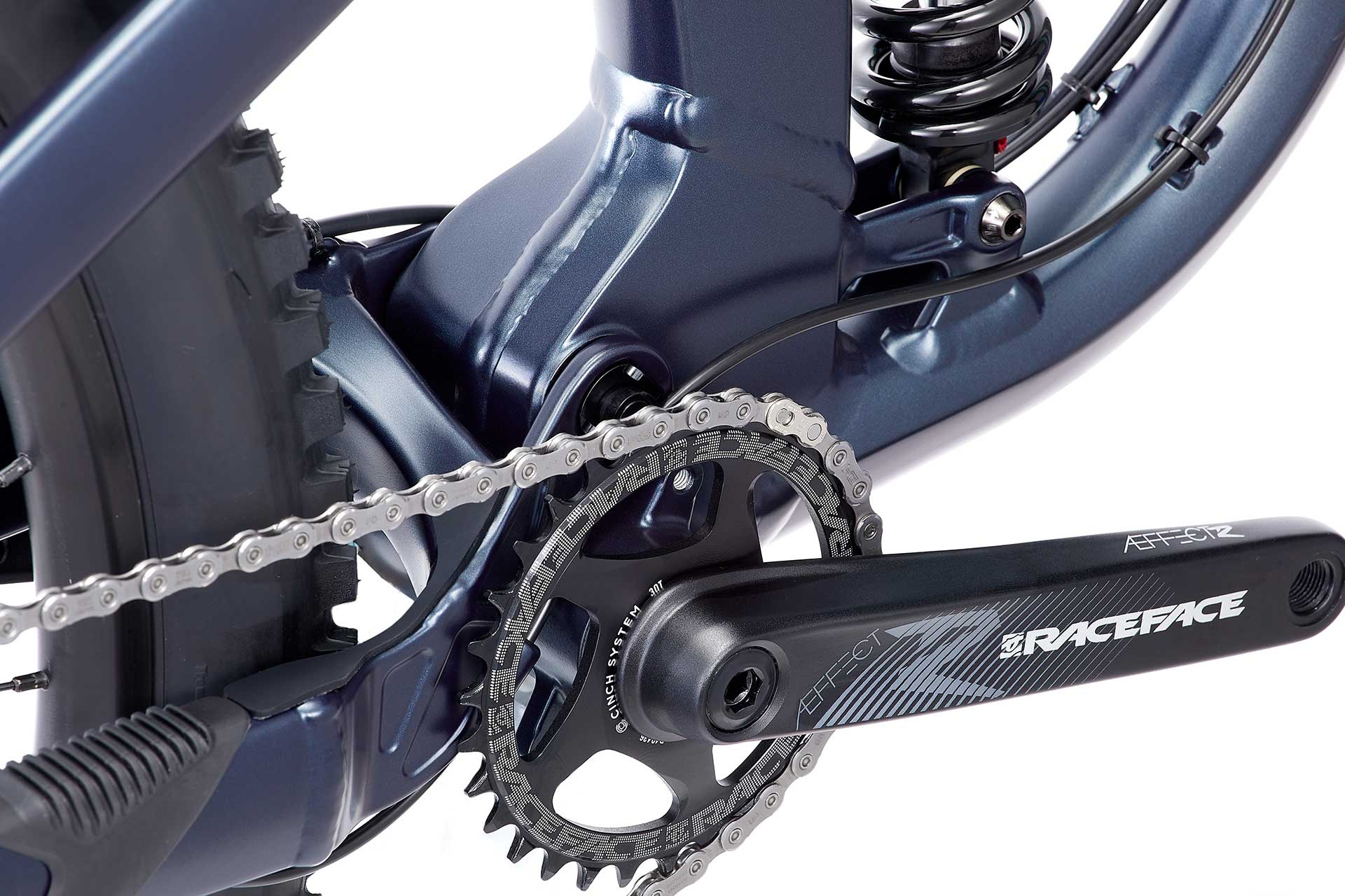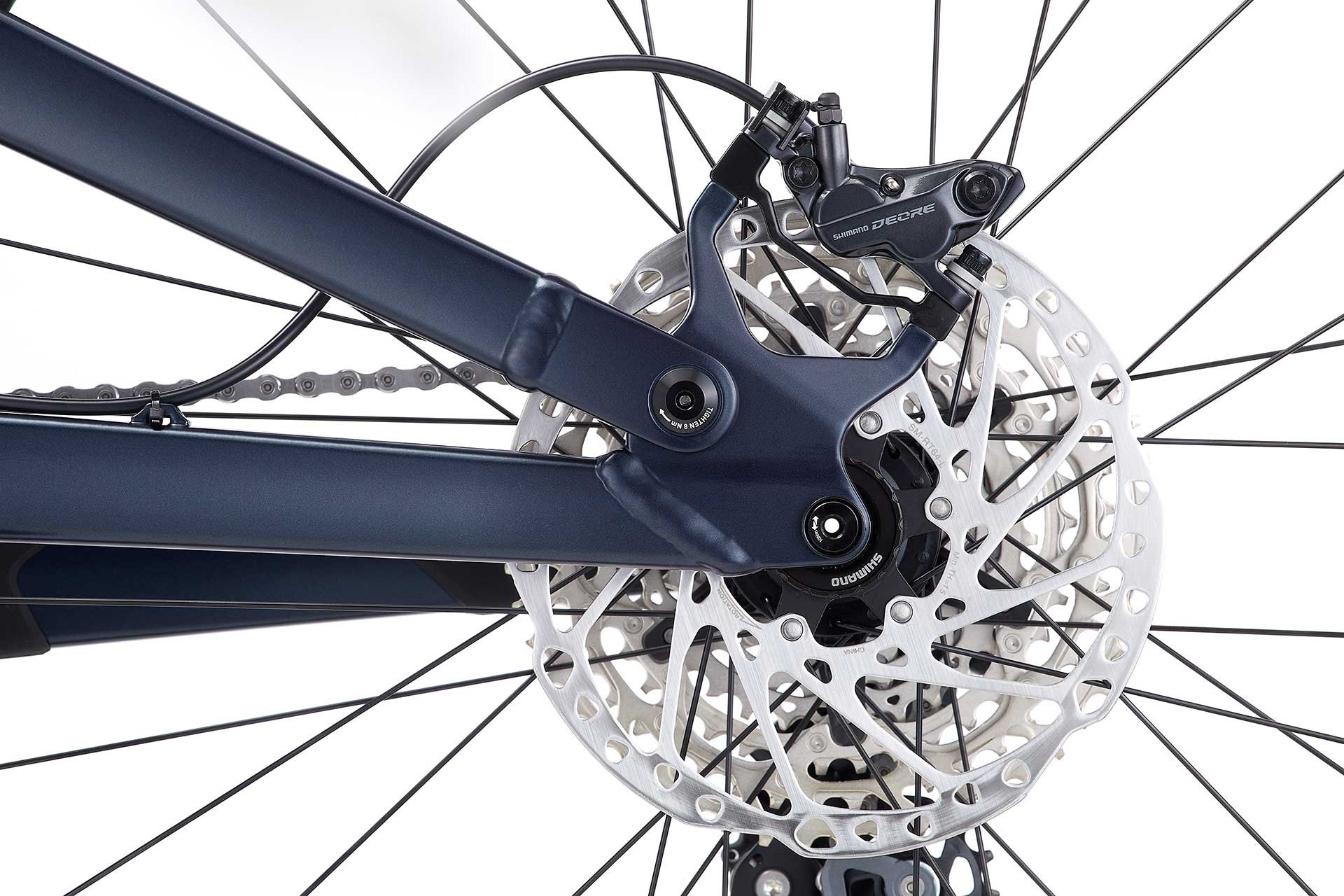 後輪のアクスルに、12x148mm アクスルを使います。このスルーアクスルは、大きな利点を2つ提供します。1つ目は、リアアクスルの12mmという直径がリアハブとフレームとを噛みあわせ剛性を上げること。2つ目はホイールをフレームと、アクスルを挿入する前から正確な位置に合わせられること。また、チェーンステーとタイヤとのクリアランス(空間)を広げて太いタイヤ(プラス規格)の装着を可能とし、高剛性で反応性の高いホイールを造ります。