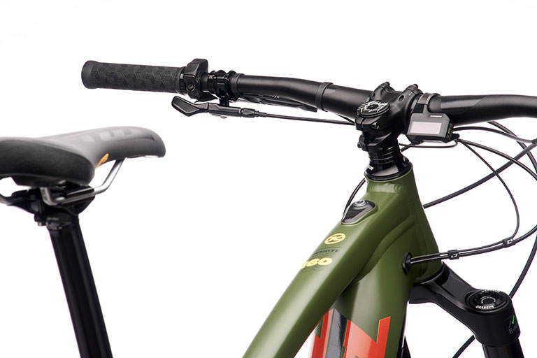 Remote 160は、パワフルなe-MTB。2020 モデルで人気を博し、さらに進化して再登場しました。Shimano DU-E8080ドライブユニットと504Whのバッテリーで、長時間の走行を楽しめます。Processをベースとしたジオメトリーが、下りで自在なバイク操作を可能にします。160mmのRockShox Zeb Charger R DebonAir フォークとSuper Deluxe Select リアショックは、このバイクの用途にぴったりのトラベル量。e-MTB専用のSRAM Guide RE ブレーキと200mmローターで、制動力にも自信があります。Maxxis Minion 27.5x2.8インチタイヤはラフな路面で素晴らしいトラクションを発揮します。「トレイルでのパフォーマンスに関しては間違いありません。KONAですから。」