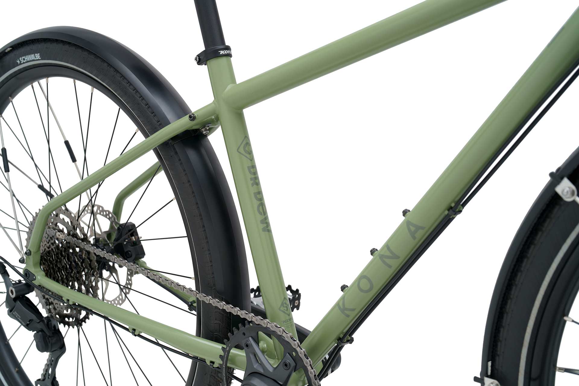 Dr Dewは、スタイルと耐久性を兼ね備えた洗練されたスチール製コミューターです。新しいフレーム設計とコミューター向けジオメトリを採用したフル・クロモリフレームとフォークが、クラシックな魅力と現代的な性能を両立。クラシックな外観のためにエクスターナルタイプのヘッドセットと、スムーズで反応性の高いライドを実現する前後のスルーアクスル(F:12x100mm、R:12x142mm)を採用しています。11速 Shimano CUES Linkglide ドライブトレインと強力なShimano油圧ディスクブレーキを搭載し、確かな信頼性とコントロールを提供。新しいKona Commuter ライザーハンドルバーと、安定感のある29 x 2.0” WTB GROOV-Eタイヤが、あらゆるライドを頑丈で確かなものにします。Dr Dewは、日々の移動を快適でスタイリッシュにするために造られた、最高のパートナーです。