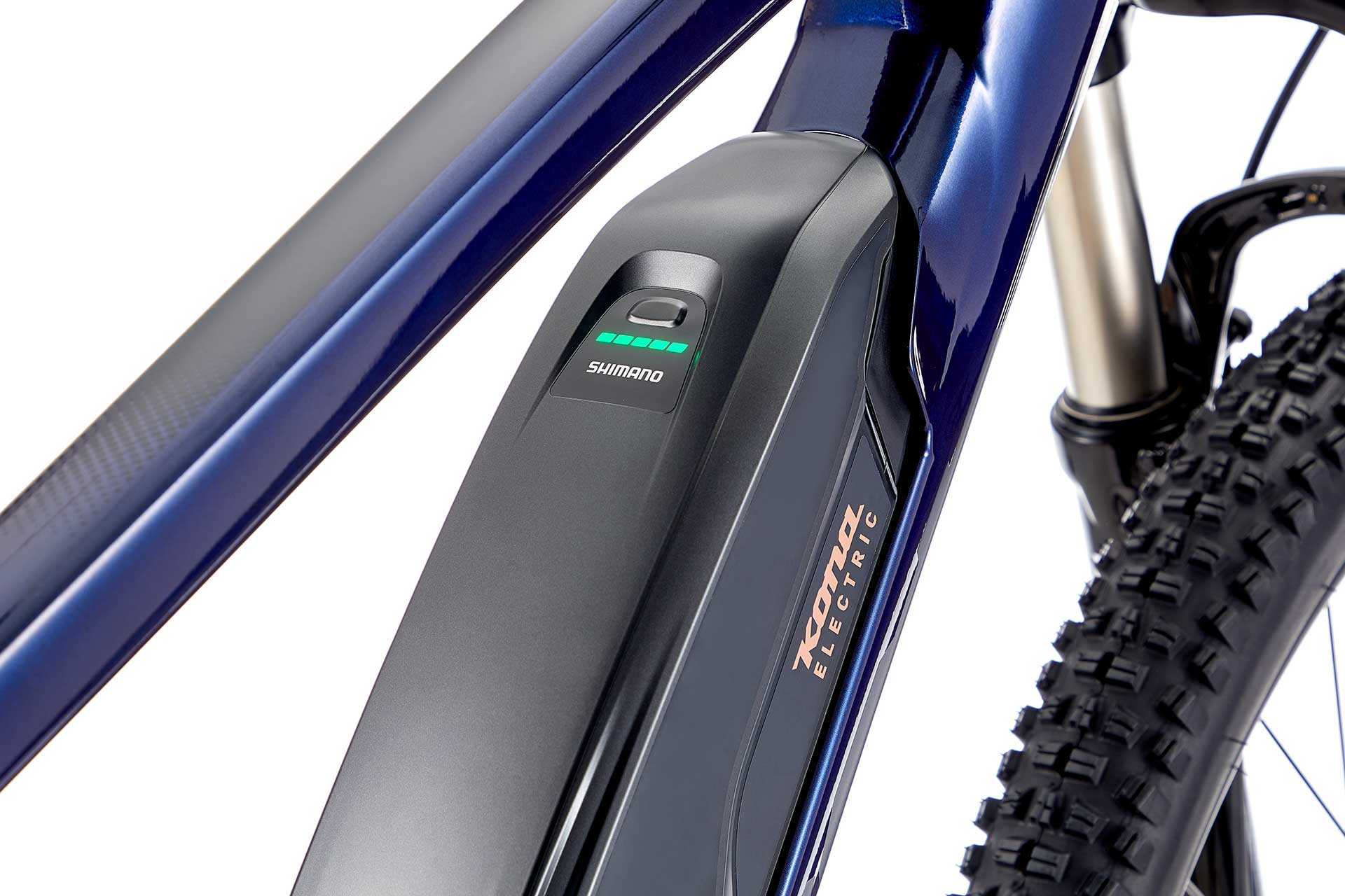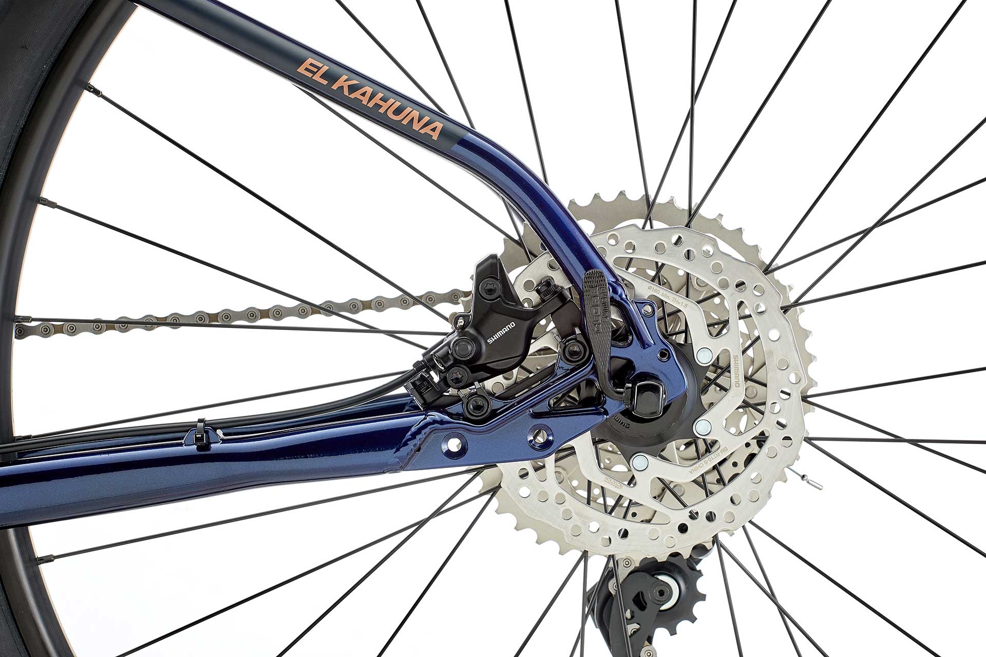 KahunaはKonaの中で最も売れているMTBハードテイルの1つでシンプルで実用的なところが好評です。まさにそのKahunaの思想をもとにEl Kahunaが作られています。シングルトラックを何時間も走ったあとに買い物できるほどの大容量バッテリーを持たせ、多用途の1台に仕上げました。Shimano DU-E6180ドライブユニットを、半一体型の504Wh バッテリーで駆動させます。100mmトラベルのサスペンションフォークは、細かな衝撃まで吸収し、Shimano製ブレーキは確かな制動力を発揮します。WTB ST i27 TCS 2.0 29インチリムにハイグリップのWTB Trail Boss 29×2.25インチタイヤを組み合わせたEl Kahunaは、パーフェクトなオールラウンダーです。
